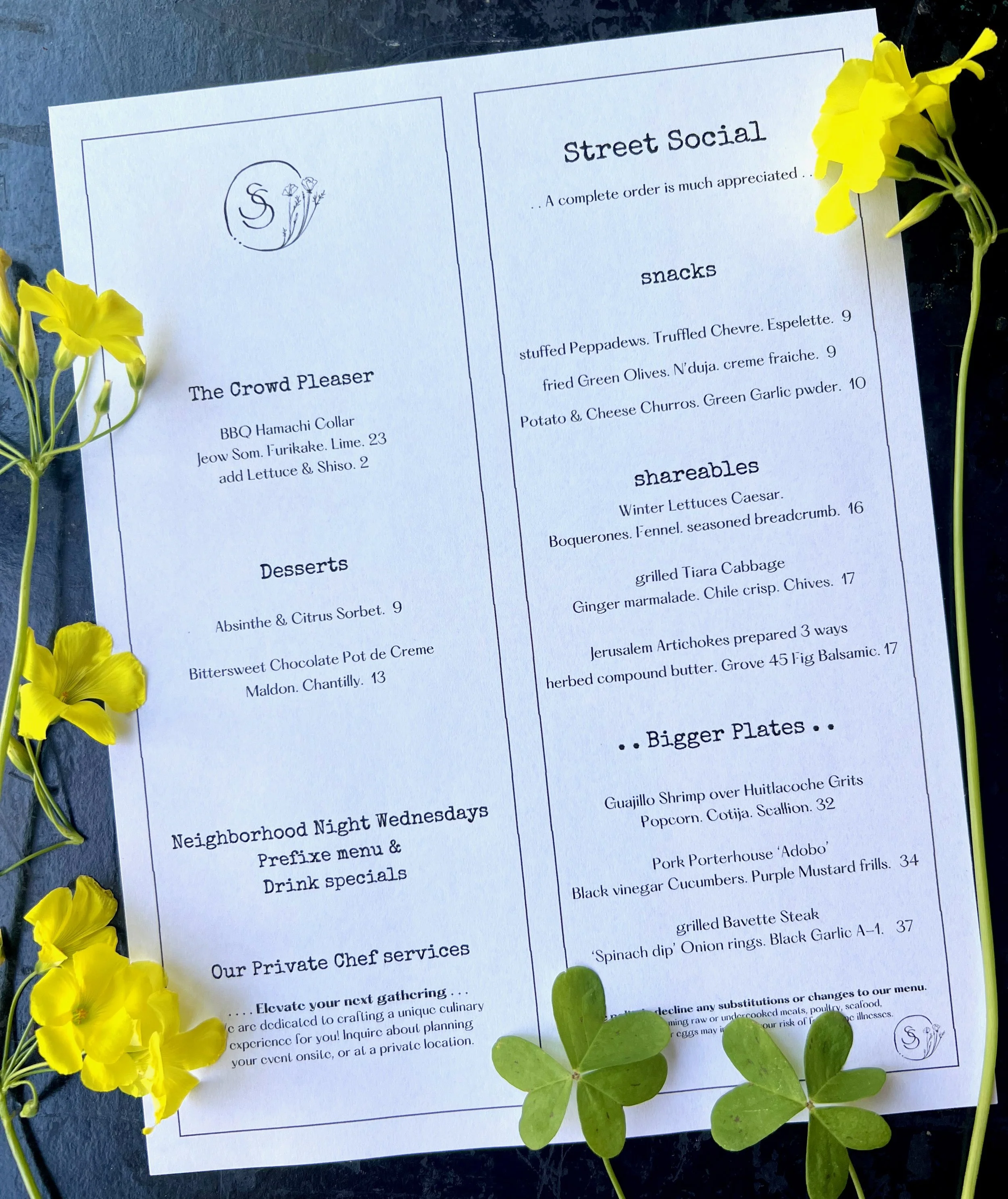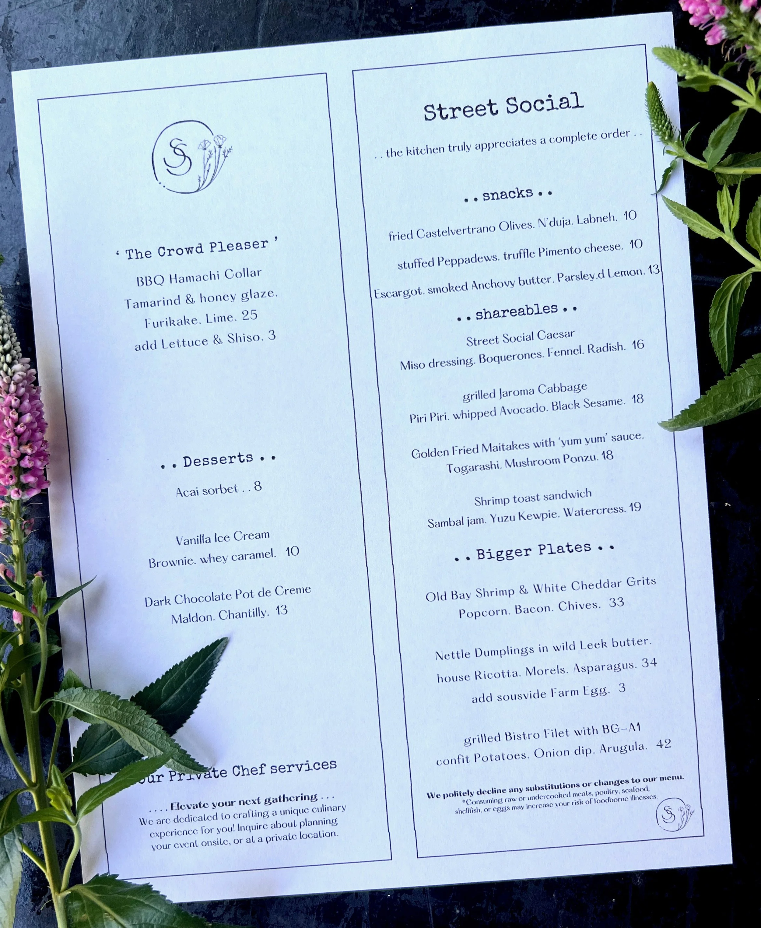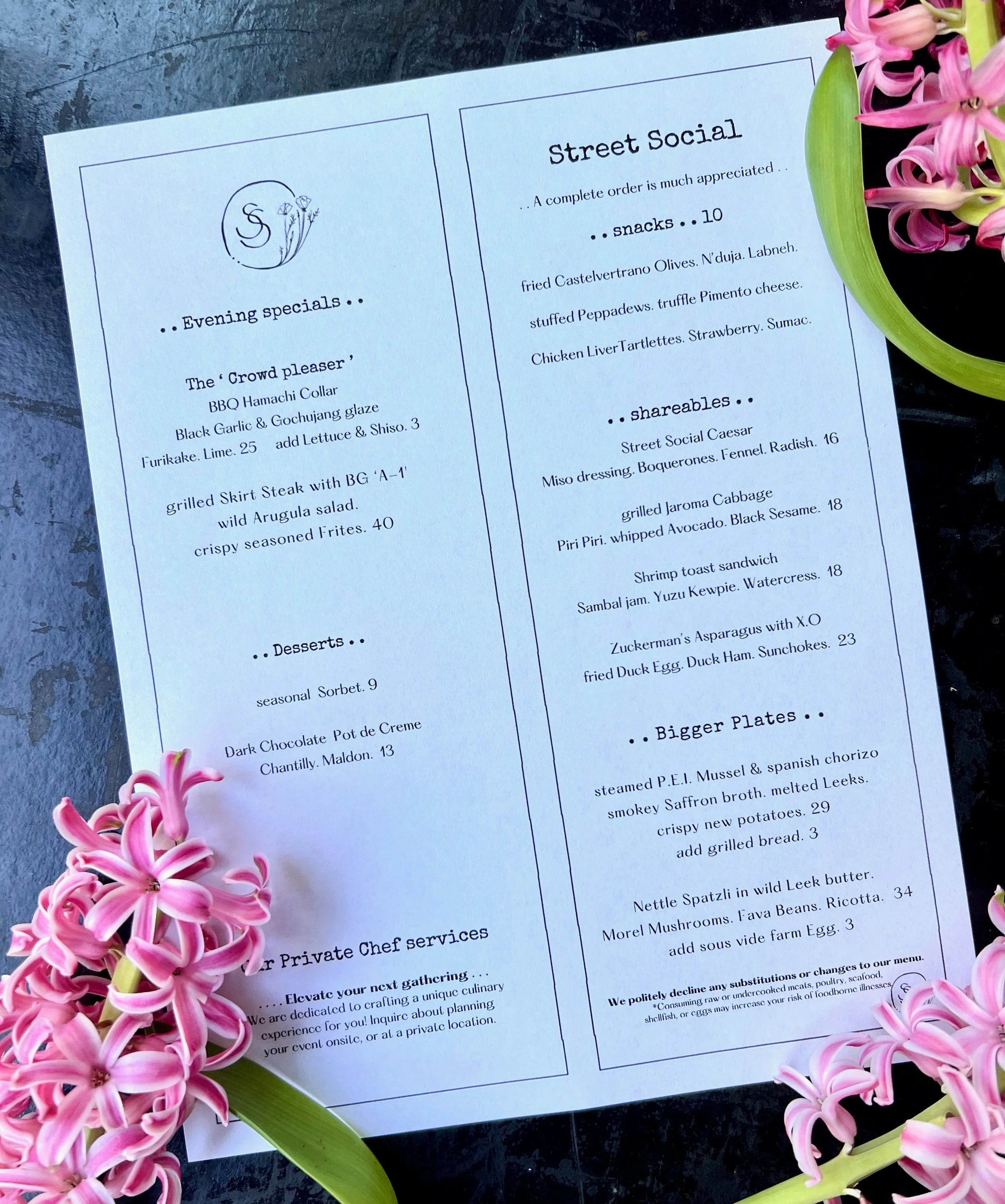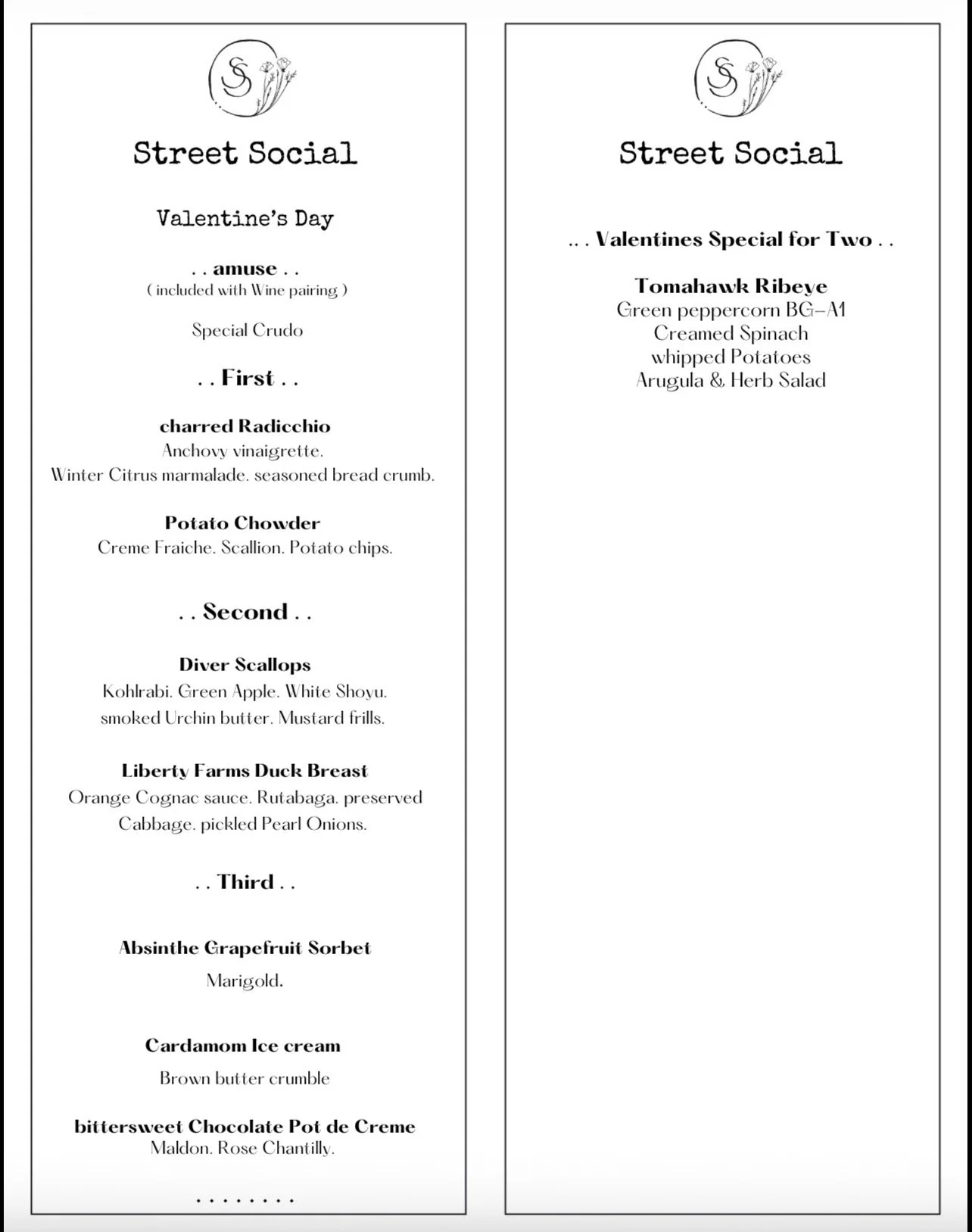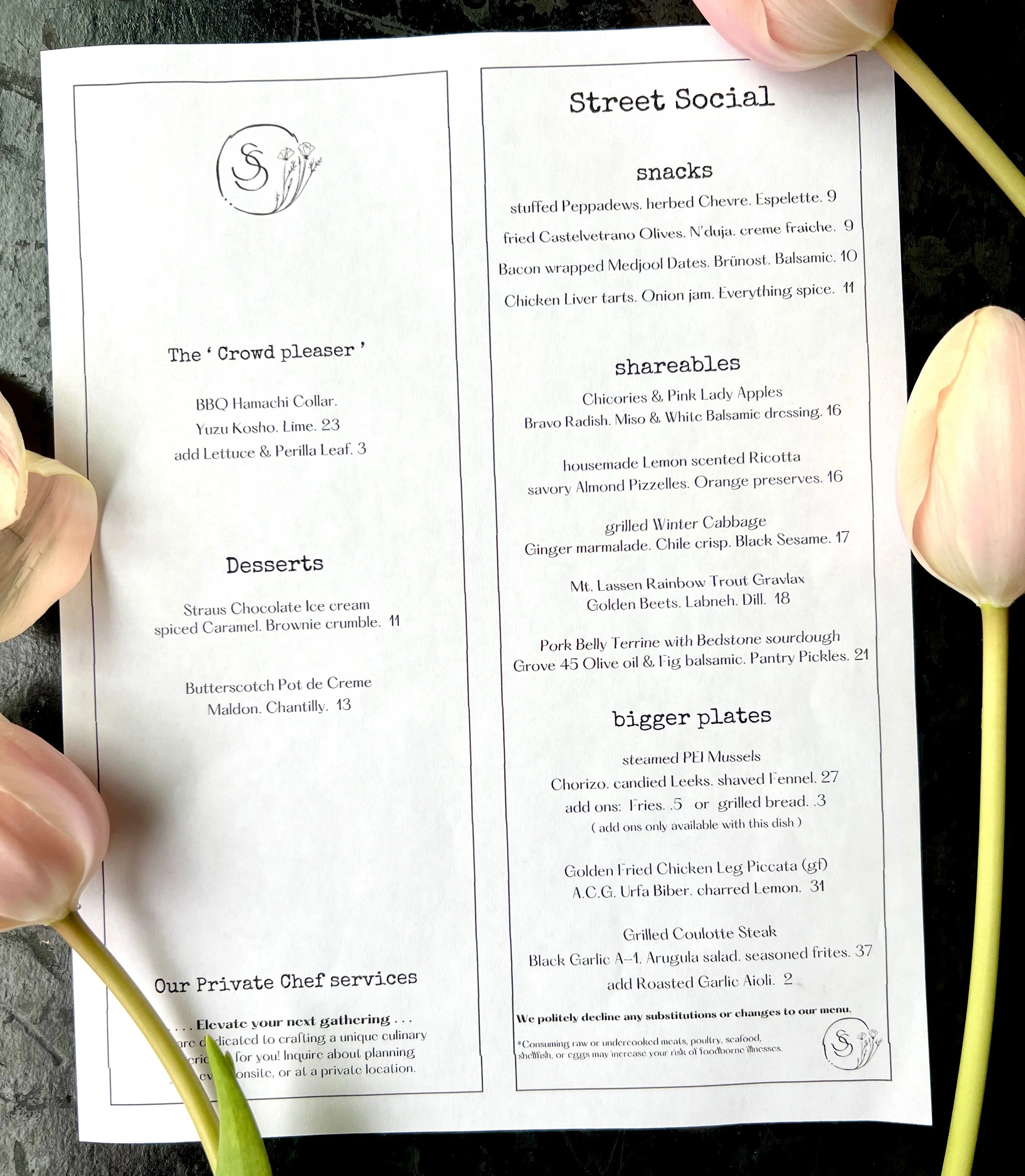 PRIVATE EVENTS: If you are interested in booking the outdoor or indoor dining space for a small private Street Social dinner, or event, please feel free to fill out the form below with your ideas, & we will create a special Street Social experience just for you & your loved ones.