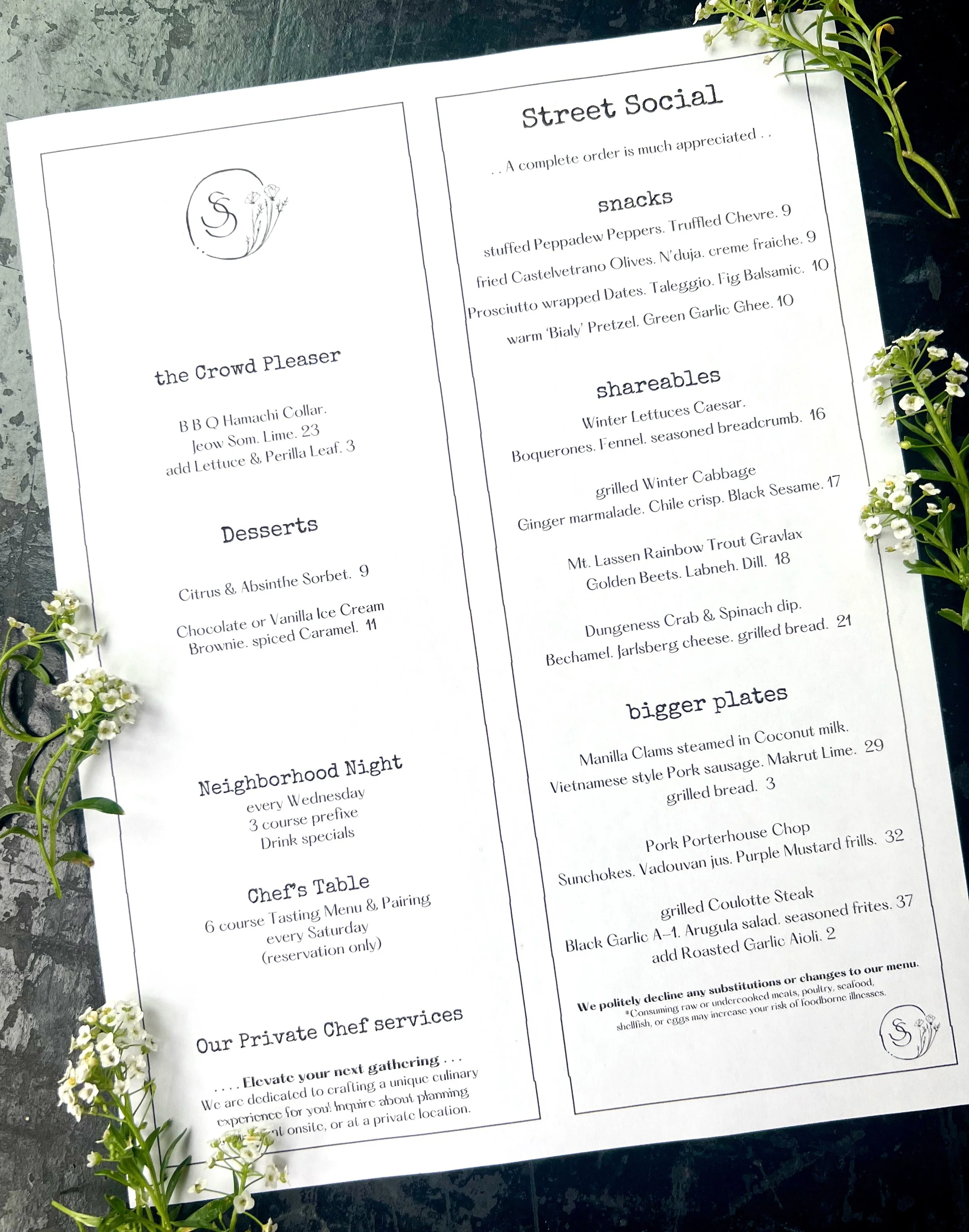 “Eclectic and wildly creative, Street Social offers Petaluma’s most exciting dinner reservation”. San Francisco Chronicle 〰️